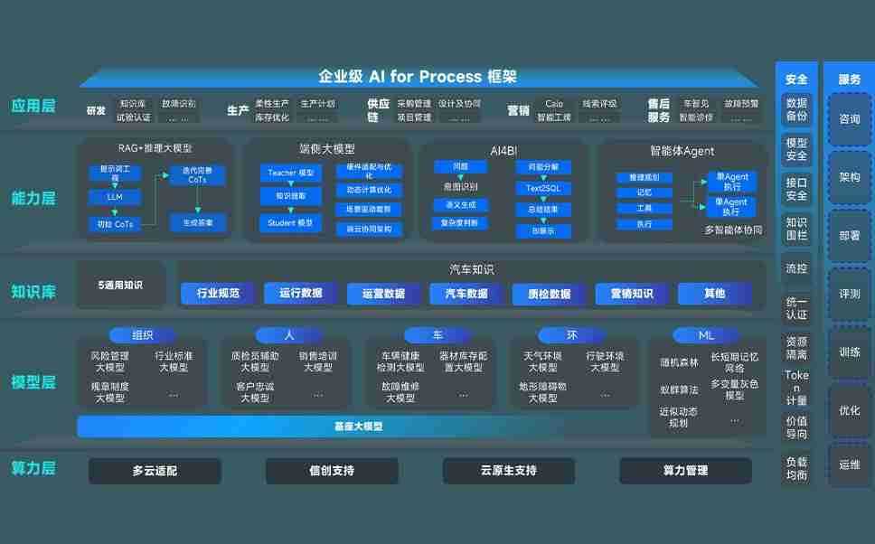 z6尊龙问学智车解决方案是一套基于AI技术的汽车行业智能化系统,,,覆盖从底层算力到顶层AI应用的全栈方案。。。。方案由算力层、、、、模型层和应用层组成:算力层,,方案支持多种一体机配置,,具备云端灵活部署、、多云适配以及动态优化计算资源的能力;模型层,,,,z6尊龙问学平台版提供了企业级AI应用一站式构建与管理平台,,,支持基于后训练强化技术的汽车企业专属模型的训练、、评测和运营;应用层,,z6尊龙问学DeepSeek版提供包括超级员工、、、智能招采、、、、智能营销、、、、智能客服、、、AI for BI等一系列解决方案,,可助力汽车行业实现数字化转型,,让管理更智能、、、响应更敏捷。。